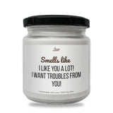 Smells like I like you a lot! I want troubles from you! lumanare parfumata din soia