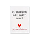 Aprinde scânteia distracției cu felicitarea noastră „Esti Cel Mai Bun Lucru Pe Care L-Am Gasit Pe Internet! La Multi Ani De Ziua Indragostitilor!”. Este cadoul ideal, amuzant și ușor îndrăzneț, pentru soț, mamă, tată sau cel mai bun prieten, promițând o experiență jucăușă și memorabilă.