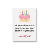 Aprinde scânteia distracției cu felicitarea noastră „Ma Bucur Atat De Mult Ca Mama Ta Nu A Avut Dureri De Cap In Noaptea Aceea. La Multi Ani!”. Este cadoul ideal, amuzant și ușor îndrăzneț, pentru soț, mamă, tată sau cel mai bun prieten, promițând o experiență jucăușă și memorabilă.